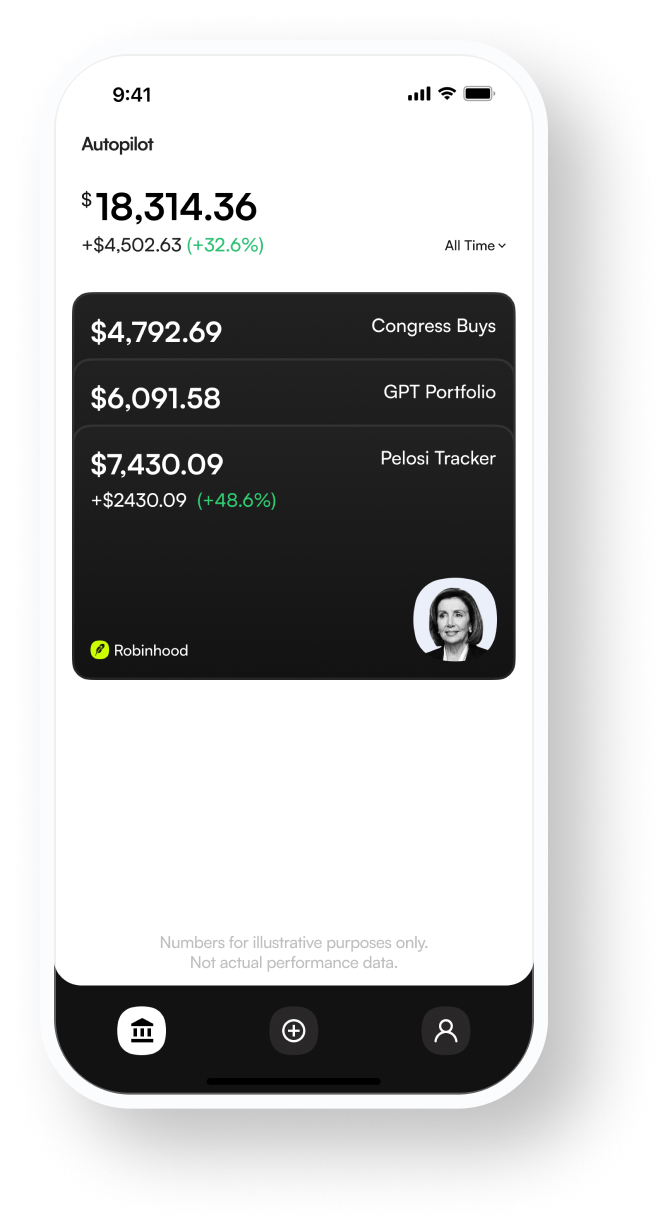 With over $500M invested across Autopilot, we're the most popular investing app allowing you to invest alongside Politicians, Hedge Fund Managers, and more.